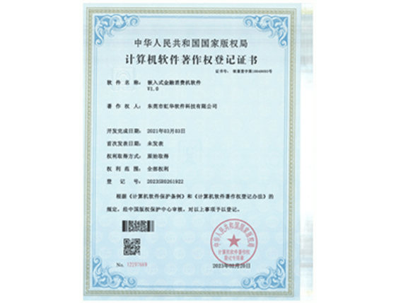 虹华食堂消费管理软件v1.0软件证书