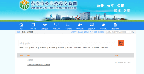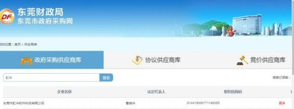 东莞市虹华软件科技有限公司于2020年4月办理政府采购入库单位,经审查备案获得通过。目前,公司已具备东莞市政府财政采购主体资格。所有单位均可在东莞市政府财政官方网上查询得到我司公开信息。