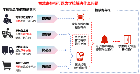 随着科技的发展,校园生活便捷度在不断提高。5G、物联网、人工智能技术的普及,让智能设备更好的提升学校的管理效率。为解决快递/家长给孩子送东西乱堆放、易丢失等问题,虹华校园智慧寄存柜正式铺设学校。