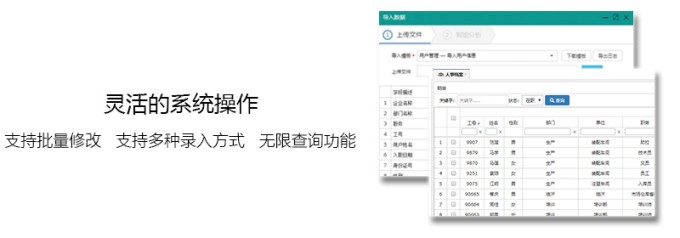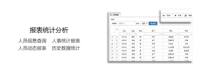 提供全方位的人事功能模块,系统自动智能分析人力资源报表。支持二代身份证识别,支持万能的自定义组合查询功能,充分满足个性化管理需求。